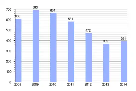 | Gráfica de evolución de la deuda viva del ayuntamiento entre 2008 y 2014 |