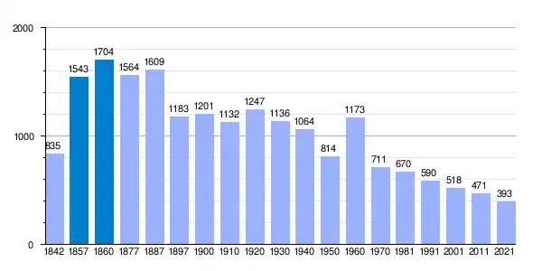 | Gráfica de evolución demográfica de El Grado[11] entre 1842 y 2021 |