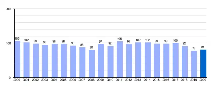 Gráfica de evolución demográfica de Lobera de la Vega entre 2000 y 2020