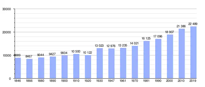 Todos los datos históricos relativos al actual municipio, el siguiente gráfico refleja su evolución demográfica, incluyendo municipios después de efectuada la fusión el 1 de enero de 1977.