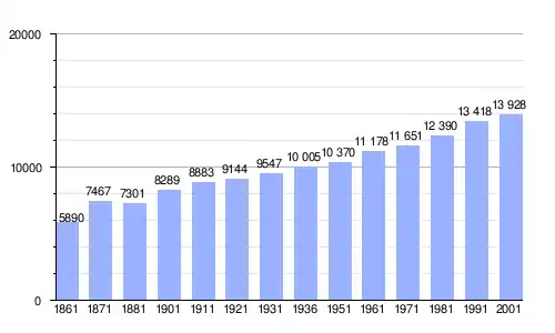 | Gráfica de evolución demográfica de Locorotondo entre 1861 y 2001 |