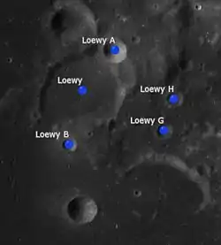 Por convención estos elementos son identificados en los mapas lunares poniendo la letra en el lado del punto medio del cráter que está más cercano a Loewy.