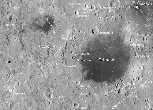 Por convención estos elementos son identificados en los mapas lunares poniendo la letra en el lado del punto medio del cráter que está más cercano a Lohrmann.