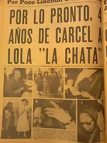 Lola la Chata ingresó siete veces a la prisión. La primera vez fue en Pachuca Hidalgo en 1934, la segunda y tercera vez en 1937, donde salió libre por falta de elementos, la cuarta vez en 1940 habiendo pagado una multa de 500 pesos que le impuso el Juez 6° de la 7° Corte Penal en el Distrito Federal, la quinta vez en 1945, la sexta vez en 1951; finalmente fue detenida en abril de 1957.[7] Su detención generó diversas declaraciones del procurador general de la República, anunciando el "fin del narcotráfico". En su defensa, esta negó participar en el tráfico de drogas, así como también proporcionar alguna lista de las personas involucradas en la distribución y comercio de los mismos, manifestó su deseo de permanecer en la cárcel para cumplir su condena, que estaba "en la vil calle", que "no podía contratar a un abogado particular para que la defendiera", así también confesó que era drogadicta.[8] Falleció en prisión aunque no se conoce exactamente si en el año 1957 o 1959, según diversas fuentes.