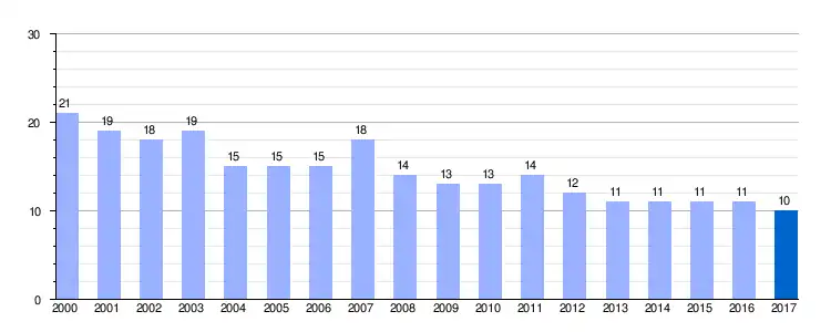| Gráfica de evolución demográfica de Lomas de Villamediana entre 2000 y 2017 |