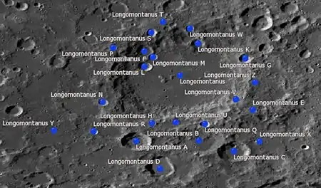Por convención estos elementos son identificados en los mapas lunares poniendo la letra en el lado del punto medio del cráter que está más cercano a Longomontanus.