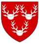 - De oro, seis roeles en orla, cinco de gules y el del jefe de azur con tres flores de lis de oro.