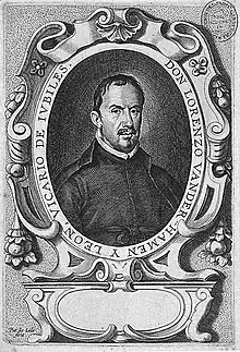 ![]() Retrato de Lorenzo van der Hamen pintado por su hermano Juan van der Hamen hacia 1620 que se conserva en el Instituto Valencia de Don Juan, Madrid. | ||