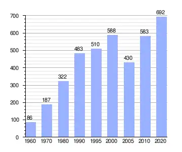 | Gráfica de evolución demográfica de Los Arcos entre 1960 y 2020 |