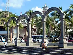 El punto focal son 4 arcos de piedra decorativos, a veces llamados Los Arcos del Malecón, los cuales han sido descritos como "casi tan reconocibles en todo el mundo" como El niño en el caballito de mar.[3] Traídos desde una hacienda a las afueras de la ciudad de Guadalajara en 1970, con motivo de una cumbre entre los presidentes de México y Estados Unidos (Gustavo Díaz Ordaz y Richard Nixon, respectivamente),[4][5] fueron destruidos en 2002 por el huracán Kenna.[1][4][5] Una réplica fue donada por el gobierno municipal de Zapopan, quienes ordenaron su reconstrucción al escultor Martín Distancia. La reconstrucción fue completada en diciembre de 2002.[1][4][5]