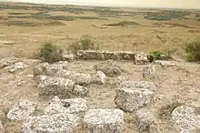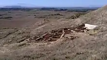 Excavada por José Galiay[64] y documentada de nuevo por Antonio Beltrán,[65] una parte de la segunda terraza citada, se encuentra en la actualidad de nuevo en estudio, habiendo descubierto en las últimas excavaciones un tramo de la muralla que rodeaba esta terraza, con el basamento de una de sus torres e incluso el quicio de una puerta de la muralla.[66]