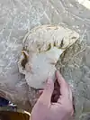 - Campaña VII (2015) - A finales de mayo en la excavación del criptopórtico oriental del foro, apareció un pedestal dedicado por el oficial de caballería Quinto Sempronio Vítulo al emperador Tiberio,[44] en su quinto consulado (31/32 d. C.),[45][46] la primera semana de junio un segundo pedestal, en la misma zona que el primero, este dedicado a Lucio Cesar,[47][48] hijo adoptivo del Emperador Augusto y que puede ser fechado entre el 5 a. C. y el 2 d. C.,[49][50] en la última semana de junio, un tercer pedestal en la misma zona, dedicado por un liberto a Quinto Sempronio Vítulo -promotor del primer pedestal dedicado a Tiberio- en el que se detalla su carrera militar,[51] como oficial en el ala Tauriana y subprefecto de cohorte en la cohors Germanorum[52] y en la primera semana de julio, un cuarto pedestal prácticamente idéntico al anterior,[53] aunque en esta ocasión aparece completo el nombre del dedicante del monumento, el liberto Aesopus[54] y, a diferencia del anterior, que se hizo por disposición testamentaria del propio Vitulo, este lo erigió Aesopus por propia iniciativa.[55]