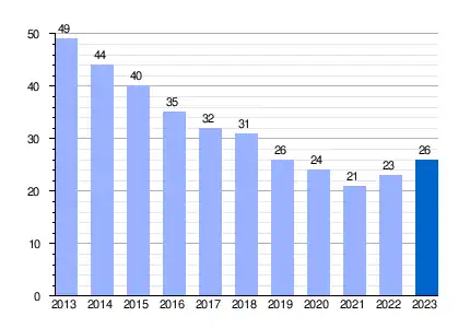 | Gráfica de evolución demográfica de Los Cózares entre 2013 y 2023 |