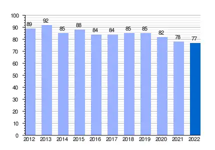 | Gráfica de evolución demográfica de Los Carlos entre 2012 y 2022 |