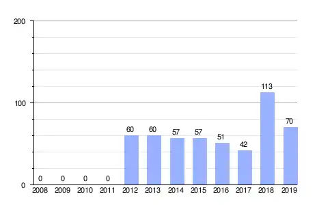 | Gráfica de evolución de deuda viva del Ayuntamiento de Los Guájares entre 2008 y 2019 |