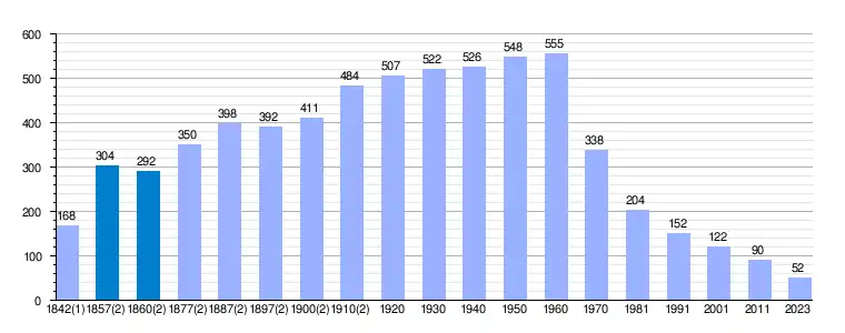 | Gráfica de evolución demográfica de Los Llanos de Tormes[7] entre 1842(1) y 2023 |
