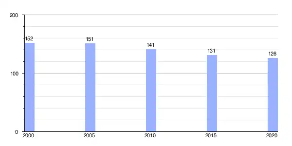 | Gráfica de evolución demográfica de San Andrés (aldea) entre 2000 y 2020 |