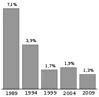 Si bien nunca logró entrar al Bundestag, ya entró varias veces a parlamentos de los estados federados (Landtag), sobre todo en los años 1980 y 90, y poseen varias bancas en consejos deliberantes de ciudades alemanas.