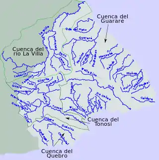 Además, durante el cretácico tardío y terciario temprano se forma la cuenca sedimentaria de Tonosí.[28] Las dos cuencas más importantes de la región están tapizadas por sedimentos que datan del terciario, especialmente de calizas en el río Tonosí y lititas, conglomerados y areniscas en el río La Villa.
