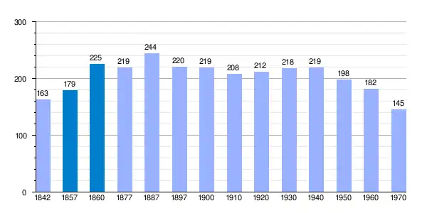 | Gráfica de evolución demográfica de Los Tremellos[1] entre 1842 y 1970 |