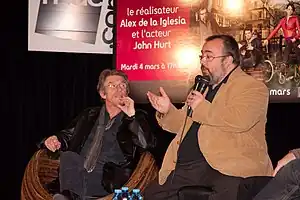 ![]() John Hurt y Álex de la Iglesia promocionando el filme. | ||