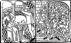 El juego de ajedrez era popular en Francia en la Edad Media, no es raro que los textos y los cantares lo evoquen ya que pone en juego el honor de ambos jugadores,[160] al tiempo que constituye una proyección del enfrentamiento militar en un tablero de ajedrez. En Los cuatro hijos de Aymón, la disputa en el ajedrez desemboca a continuación el conflicto, cuyo interés, para los hijos de Aymón, es también «poner al rey en jaque».[161] Este episodio parece haber tenido una clara importancia para el público y los autores de la Edad Media, aunque únicamente sea por su abundante iconografía. Alexander Neckam se refiere explícitamente a ello en su enciclopedia.[91]