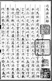 Uno de los nombres alternativos para el libro es "Los métodos de Sima Rangju", basado en la descripción de la obra de Sima Qian como atribuida en gran parte al famoso general Qi del siglo IV antes de Cristo, Sima Rangju. Sima Qian afirma que, después de la muerte de Sima Rangju, el rey Wei de Qi (r.356-320 aC) recopiló todas las escrituras militares más famosas que existían en Qi, de las cuales las escrituras de Sima Rangju eran un componente principal. Según Sima Qian, el libro resultante fueron los Métodos de la Sima.[7]