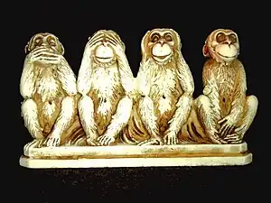 Los tres monos (en japonés san saru, 三猿), también conocidos como los «tres monos sabios» o «tres monos místicos», están representados en una escultura de madera de Hidari Jingorō (1594-1634), situada sobre los establos sagrados del santuario de Toshogu (1636), construido en honor de Ieyasu Tokugawa, en Nikko, al norte de Tokio (Japón).[1]
