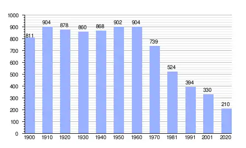 | Gráfica de evolución demográfica de Losacino entre 1900 y 2020 |