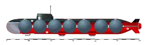 ![]() Perfil del submarino Losharik (conjetura). | ||