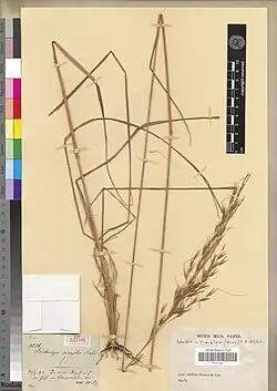 - (en inglés) Watson L, Dallwitz MJ. (2008). «The grass genera of the world: descriptions, illustrations, identification, and information retrieval; including synonyms, morphology, anatomy, physiology, phytochemistry, cytology, classification, pathogens, world and local distribution, and references». The Grass Genera of the World. Archivado desde el original el 15 de noviembre de 2007. Consultado el 9 de marzo de 2010.