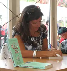 ![]() Louise Doughty, firma libros en el Festival de Edimburgo, 2008. | ||