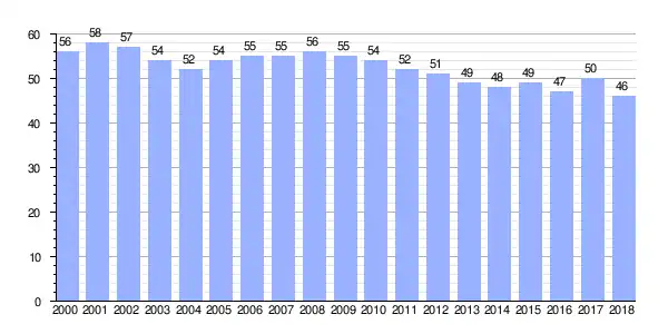 | Gráfica de evolución demográfica de Loureiro entre 2000 y 2018 |