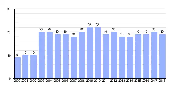| Gráfica de evolución demográfica de Loureiros entre 2000 y 2018 |
