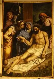 El mismo conocimiento de los manieristas romanos se advierte en las pinturas del retablo de Loures, así en el Nacimiento de la Virgen, inspirado en Sebastiano del Piombo y en Francesco Salviati, y en la figura de santa Catalina en los dos retratos de la reina Catalina antes atribuidos a Lopes, cuyo modelo se encuentra de nuevo en Siciolante da Sermoneta, en este caso en el fresco de Santa Lucía y santa Águeda de la basílica de Santa Maria sopra Minerva.[6]
