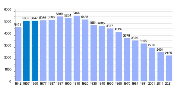 | Gráfica de evolución demográfica de Lourenzá[6] entre 1842 y 2021 |