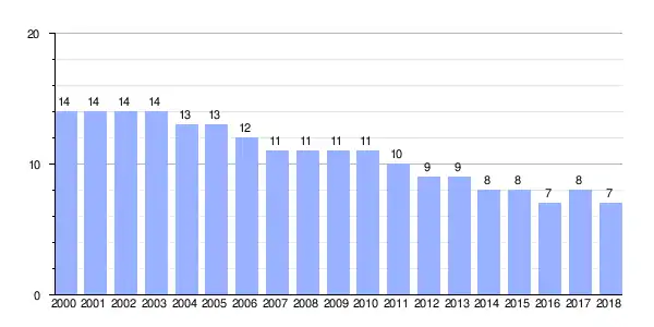 | Gráfica de evolución demográfica de Lousa entre 2000 y 2018 |