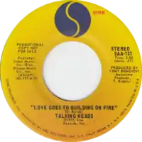 - «Love → Building on Fire» (Single liner notes). Talking Heads. UK: Sire Records. 1977. 6078 604.