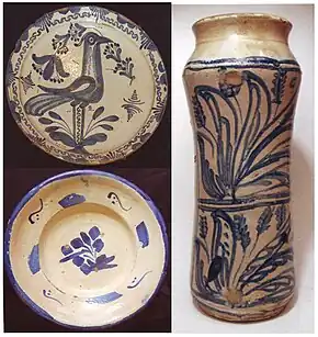 - Loza tricolor (azul, ocre y manganeso/morado negruzco)