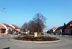 Se encuentra ubicada al sureste de la región, cerca de la orilla del río Morava —un afluente izquierdo del Danubio—, de la frontera con la región de Zlín y con Eslovaquia, y a poca distancia al sureste de la ciudad de Brno.[1]