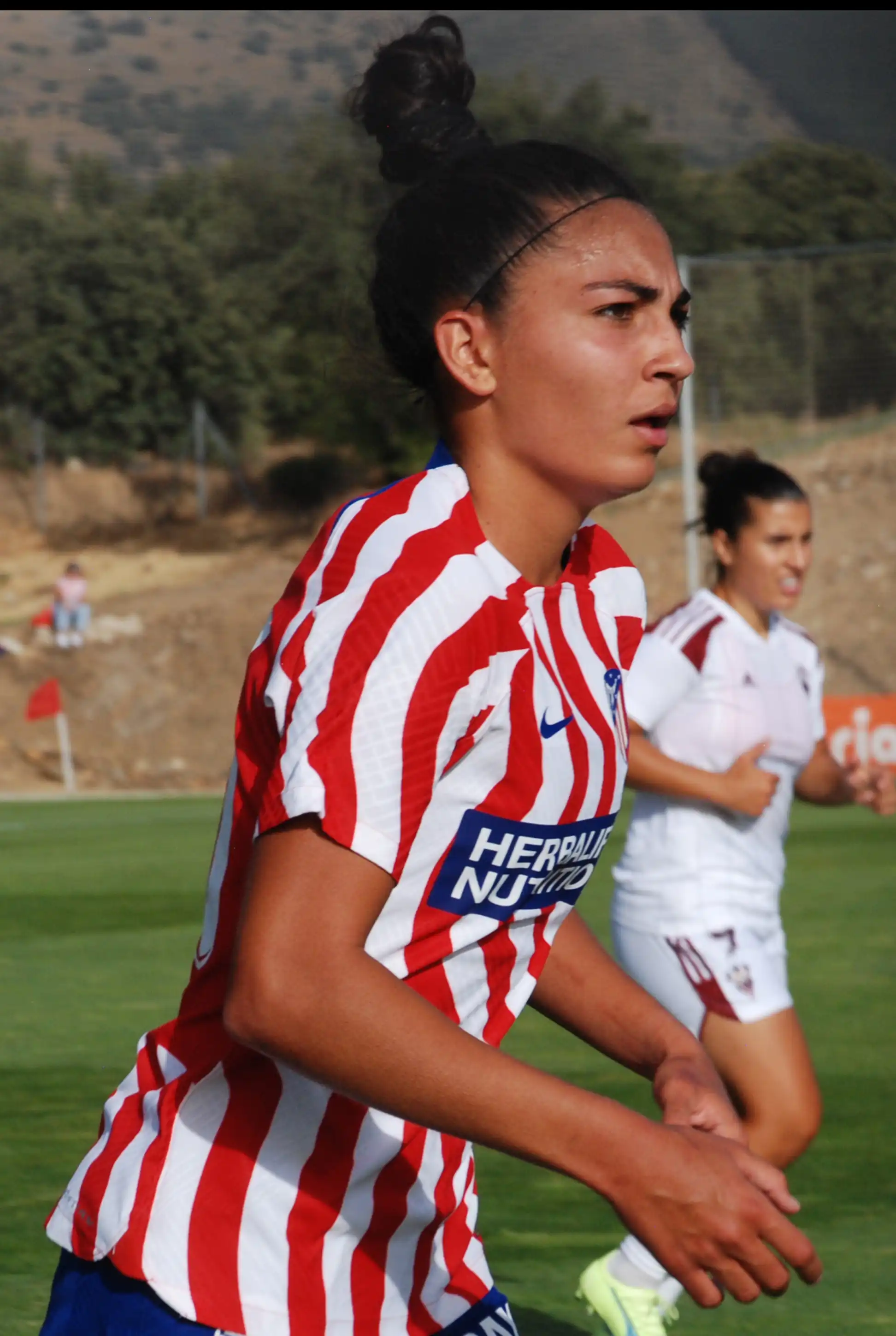 En 2022 fichó por el Atlético de Madrid,[5] y debutó en Primera División el 25 de septiembre ante el Deportivo Alavés participando en la jugada del gol que dio la victoria en el último minuto por 1-0.[6][7] En el primer tramo de la temporada dispuso de varias oportunidades saliendo desde el banquillo. Dio una asistencia ante el Sporting de Huelva y marcó su primer gol ante el Athletic Club el 29 de octubre de 2022.[8] En diciembre de 2022 la emisora Onda Cero le otorgó el premio a la mejor deportista en progresión de Córdoba.[9] Durante la temporada dispuso de pocos minutos y empezó a jugar algunos partidos con el filial. El 1 de abril de 2023 jugó la segunda mitad ante el Valencia C. F. y fue la protagonista del partido al forzar un penalti, marcar dos goles y dar una asistencia de gol.[10] Esa actuación le abrió la puerta a la titularidad y fue elegida mejor jugadora del equipo de abril. El equipo no fue regular durante la temporada y acabó en cuarta posición en liga. En la Copa de la Reina se clasificaron de forma sólida para la final, en la que se enfrentaron al Real Madrid en el Estadio de Butarque de Leganés y fue suplente y protagonista al iniciar la remontada de un 2-0 adverso con un gol en el minuto 88. El equipo ganó el trofeo en la tanda de penaltis.[11]