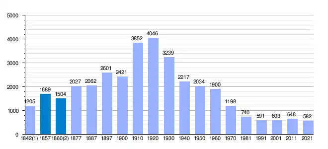 Gráfica de evolución demográfica de Lucainena de las Torres[12] entre 1842(1) y 2021