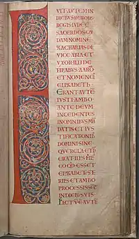 Lucas 1 es el primer capítulo del Evangelio de Lucas del Nuevo Testamento de la Biblia cristiana. Biblia. Con 80 versículos, es uno de los capítulos más largos del Nuevo Testamento. Este capítulo describe el nacimiento de Juan el Bautista y los acontecimientos que condujeron al nacimiento de Jesús.[1] Dos cánticos, el cántico de María (el Magnificat) y el Cántico de Zacarías Benedictus, están ambos contenidos en este capítulo. El autor de Lucas nombra a su destinatario, Teófilo, que muy probablemente sea una persona real (pero desconocida),[2] pero el término podría significar simplemente un compañero creyente, ya que theo philus es en griego para [[Dios] amante, «el que ama a Dios».[3] La tradición cristiana primitiva afirma uniformemente que Lucas compuso este Evangelio así como los Hechos de los Apóstoles,[4] el volumen compañero de Lucas, que se dirige a Teófilo de la misma manera.[5] El título «El Evangelio de Lucas», que se encuentra en muchas Biblias y en algunos manuscritos, se añadió posteriormente sin indicación de que originalmente formara parte del texto.