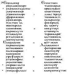 - Aland, Kurt; Aland, Barbara (1995). William B. Eerdmans Publishing Company, ed. El texto del Nuevo Testamento: Una introducción a las ediciones críticas y a la teoría y práctica de la crítica textual moderna. Erroll F. Rhodes (trad.). Grand Rapids. p. 96. ISBN 978-0-8028-4098-1.