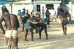 Deporte tradicional, los primeros combates de lucha tenían lugar después de la temporada de lluvias y enfrentaban a los luchadores de las aldeas vecinas en campeonatos llamados mbaapat. Esto es particularmente cierto en las regiones del norte del Seno-Saloum y Casamanza.