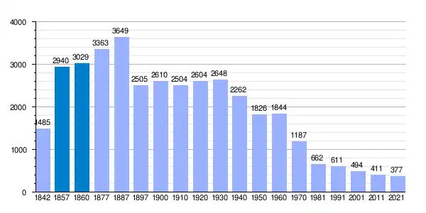 | Gráfica de evolución demográfica de Lucillo[6] entre 1842 y 2021 |