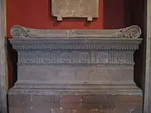El epitafio de su tumba no dice nada de su victoria en Etruria, sino que habla de sus conquistas en Samnio y Apulia. Barthold Georg Niebuhr supone que sus conquistas en Samnio y Apulia, se hicieron en el año 297 a. C., cuando fue el legado de Fabio Máximo.[4] El sarcófago que contiene su cuerpo, hoy en los Museos Vaticanos, preserva su epitafio, una vieja inscripción latina en métrica saturnina. La inscripción reza así: