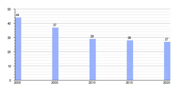 | Gráfica de evolución demográfica de Lugar de Arriba entre 2000 y 2020 |