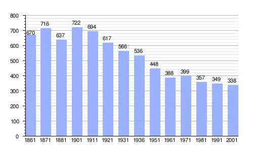 | Gráfica de evolución demográfica de Lugnacco entre 1861 y 2001 |