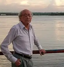 ![]() Luis García Morales con el río Orinoco de fondo. | ||
